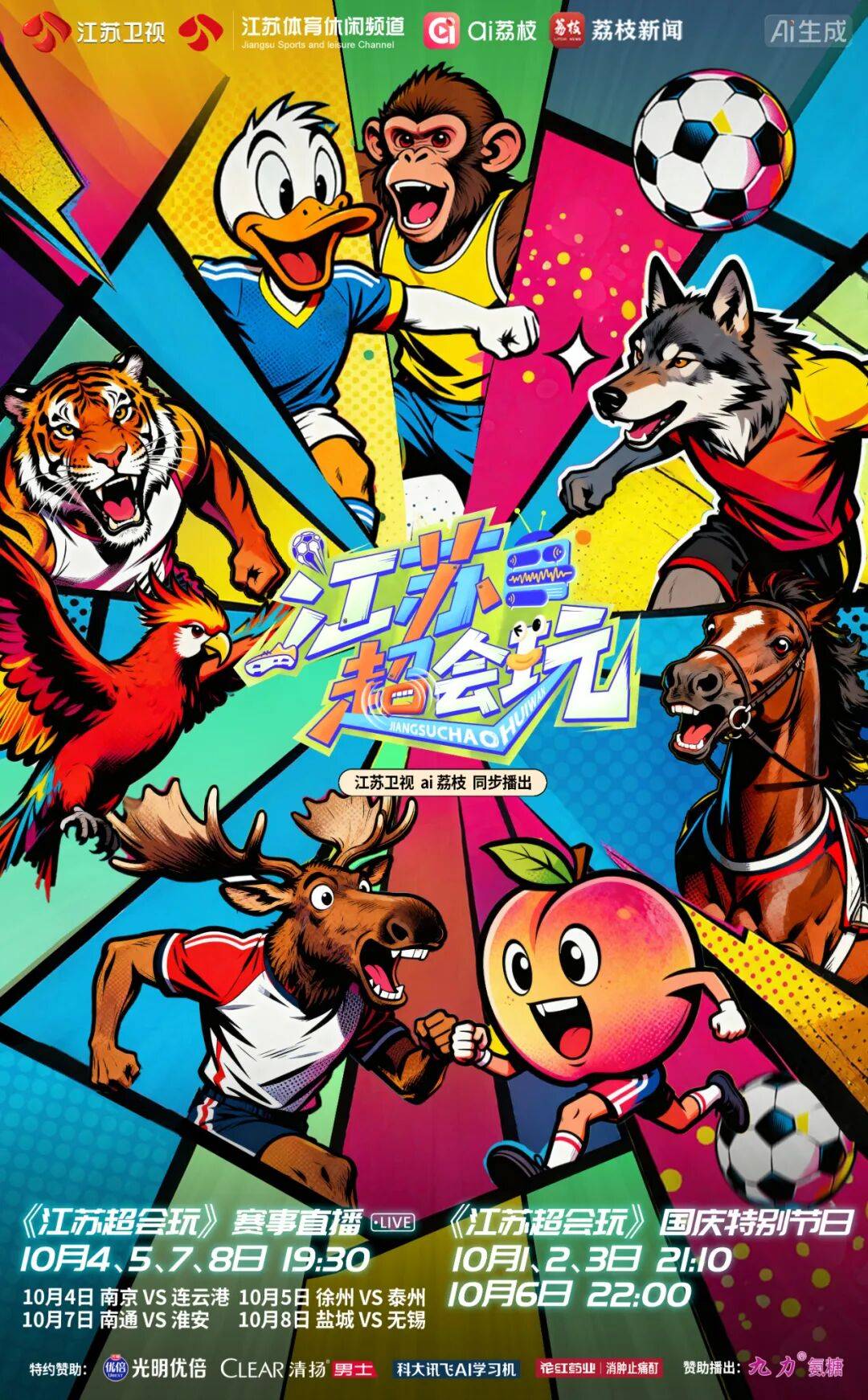 此外,10月1日、2日、3日21:10以及10月6日22:00,《江苏超会玩》还将推出国庆特别节目,全景复盘“苏超”常规赛高光时刻,带观众重温“为足球沸腾”的热血记忆。