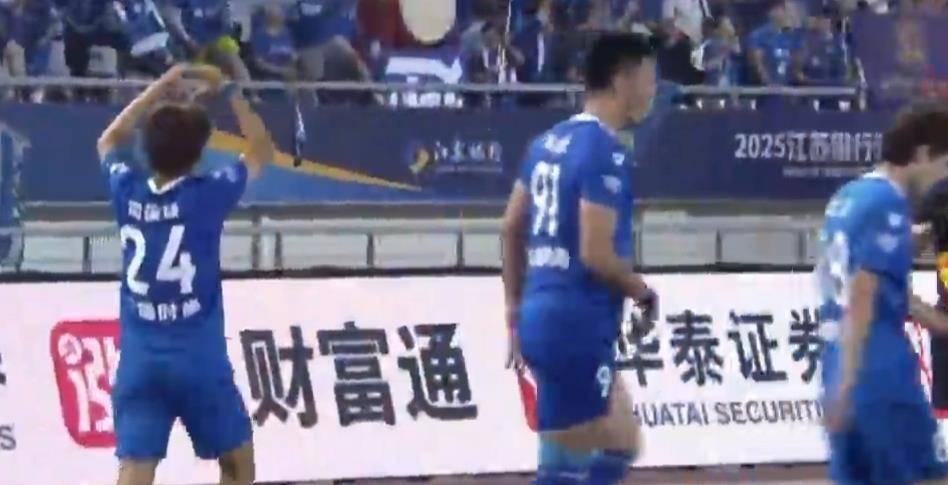 连云港的柳烨主罚,稳稳命中,还脱衣庆祝,1-1绝平! 这剧情,电视剧都不敢这么拍。