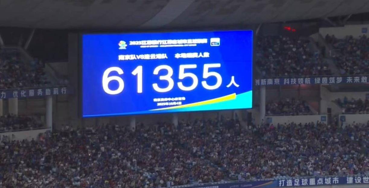 比赛是10月4日晚上打的,南京奥体中心涌进来61355人,又破纪录了。 这地方今年第五次观众超六万,你说南京球迷是不是太狂热了?