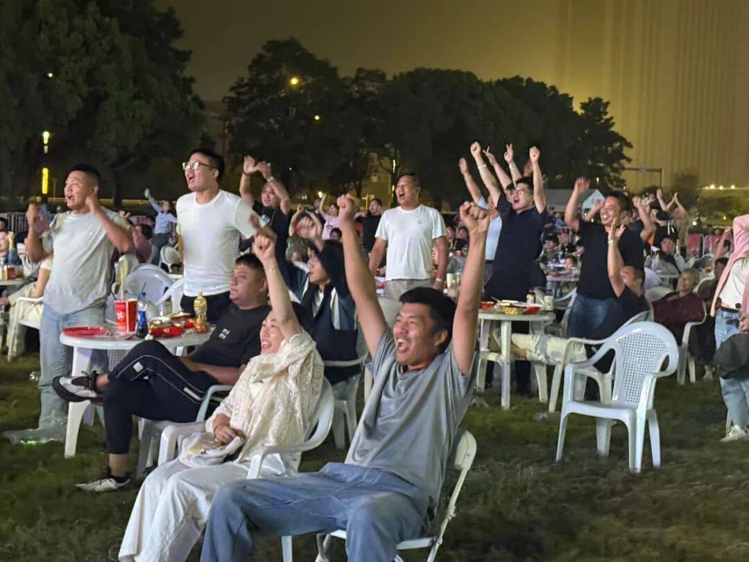 盐都第二现场爆发的呐喊与掌声声声相应,仿佛在夜幕下掀起了一阵为足球而奔涌的滚烫热浪。