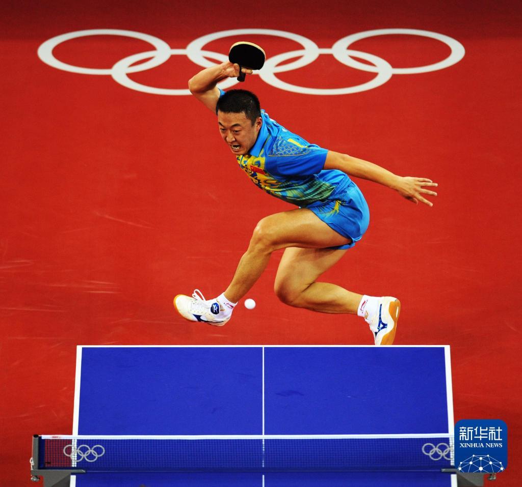 2008年8月23日,中国选手马琳在北京奥运会乒乓球男子单打决赛中,以4比1战胜队友王皓,获得冠军。新华社记者罗更前摄