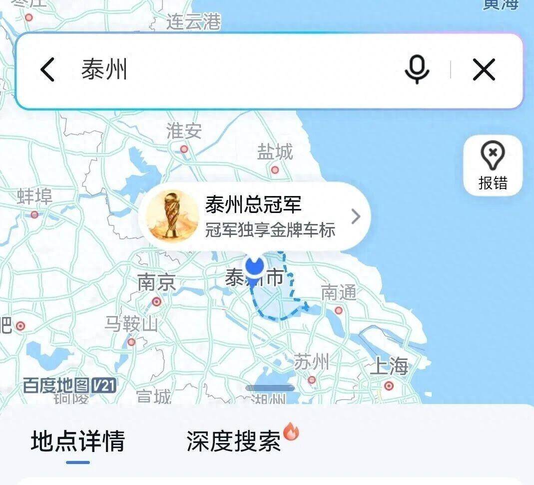 球速体育,球速体育官方网站,球速体育APP下载/球速体育官方网站(QIUSU)-BallSpeed Sports[永久网址:363050.com]为游戏玩家打造的全球最顶级球速电子游戏APP,提供球速体育,球速体育官网,球速体育官方网站,球速体育最新网址,球速体育app下载,球速体育登录入口,球速体育注册,球速体育靠谱吗,球速APP下载,球速体育平台登录,体育买球,真人视讯,欢迎各位的加入,共创博彩新辉煌!2025年11月4日下午,当网友像往常一样打开百度地图搜索“泰州”时,惊奇地发现这座城市的名字前面多了一个金灿灿的大力神杯图标,还配上了“泰州总冠军”的字样。 这个变化迅速在社交平台传开,有人调侃说:“这下泰州在地图上的‘排面’拉满! ”