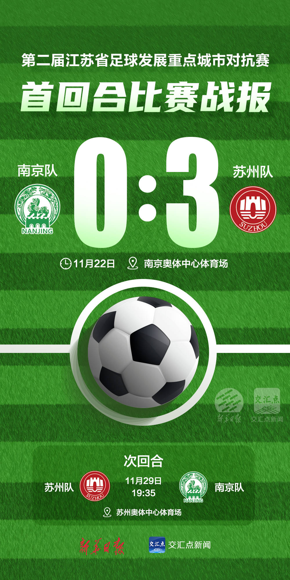 本届赛事延续主客场双回合赛制,并引入客场进球规则与点球决胜机制。下周六(11月29日),两队将移师苏州奥体中心体育场展开第二回合对决。是苏州队乘胜追击锁定冠军,延续对战优势?还是南京队背水一战实现翻盘,续写绿茵新篇?答案有待下一场比赛揭晓,让我们拭目以待。
