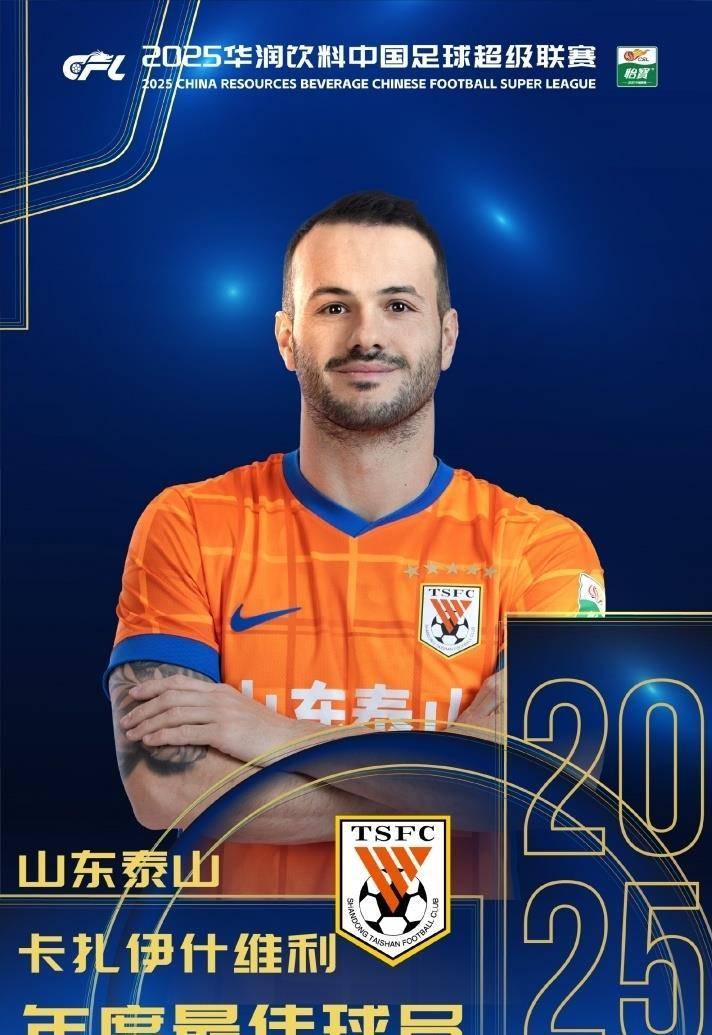 正是凭借这样炸裂的个人表现,尽管山东泰山队那个赛季最终只排名联赛第五,卡扎伊什维利依然在2025年12月举行的颁奖典礼上,毫无争议地当选为当赛季中超最佳球员。在评选过程中,他的数据具有压倒性优势。