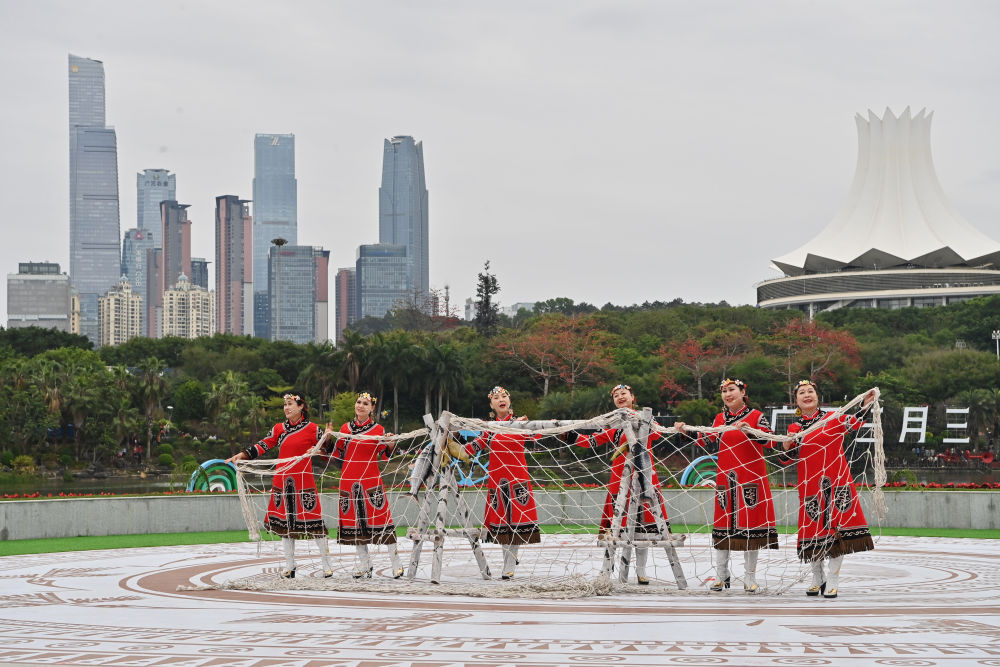 2025年3月31日,黑龙江村歌队队员在“广西三月三八桂嘉年华”开幕式暨“四季村歌”活动启动仪式现场演唱《乌苏里船歌》。